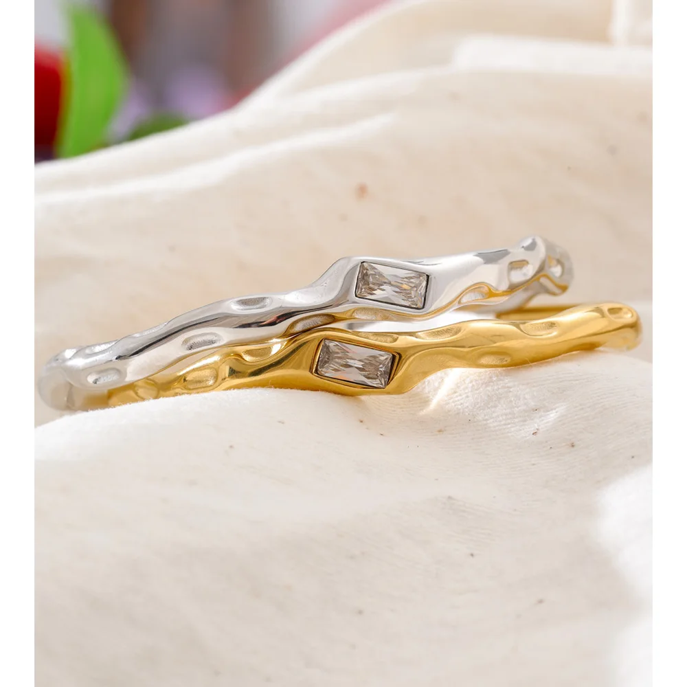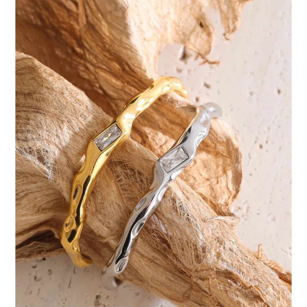Golden Line Zircon Cuff – Quiet Brilliance brings refined brilliance to contemporary jewelry design. Featuring a sleek geometric silhouette enhanced with shimmering cubic zirconia accents, this cuff balances minimal form with subtle luminosity.
