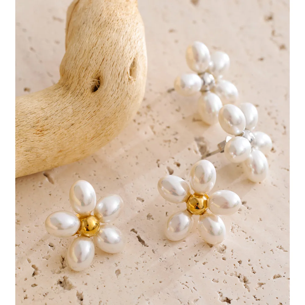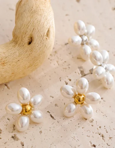 The Pearl Blossom Stud Earrings embody classic femininity with modern refinement. Featuring high-grade simulated pearls shaped into a delicate floral design and finished in luxurious PVD real gold plating, these chic stud earrings offer effortless elegance for daily wear and timeless styling.