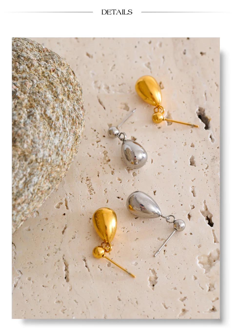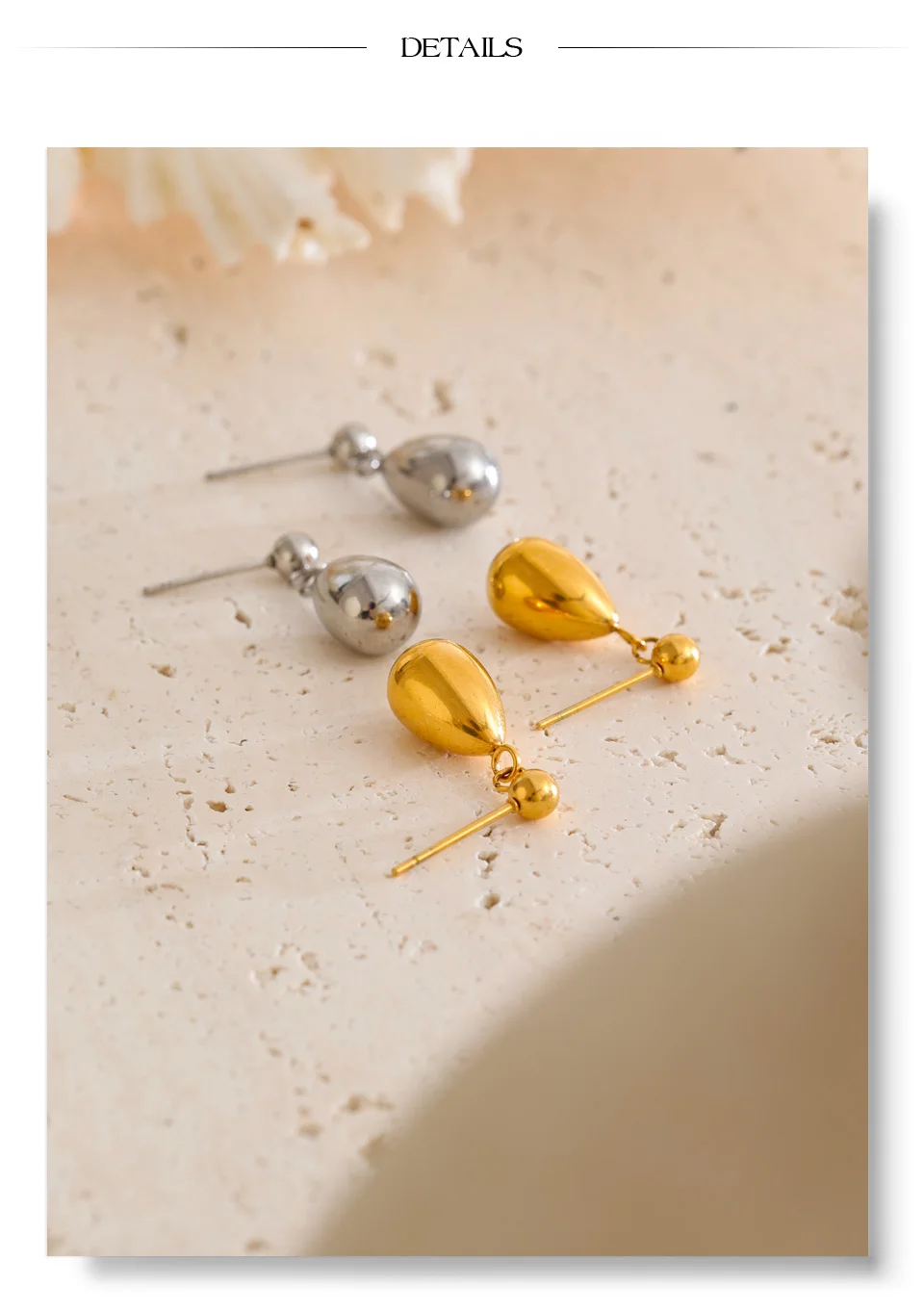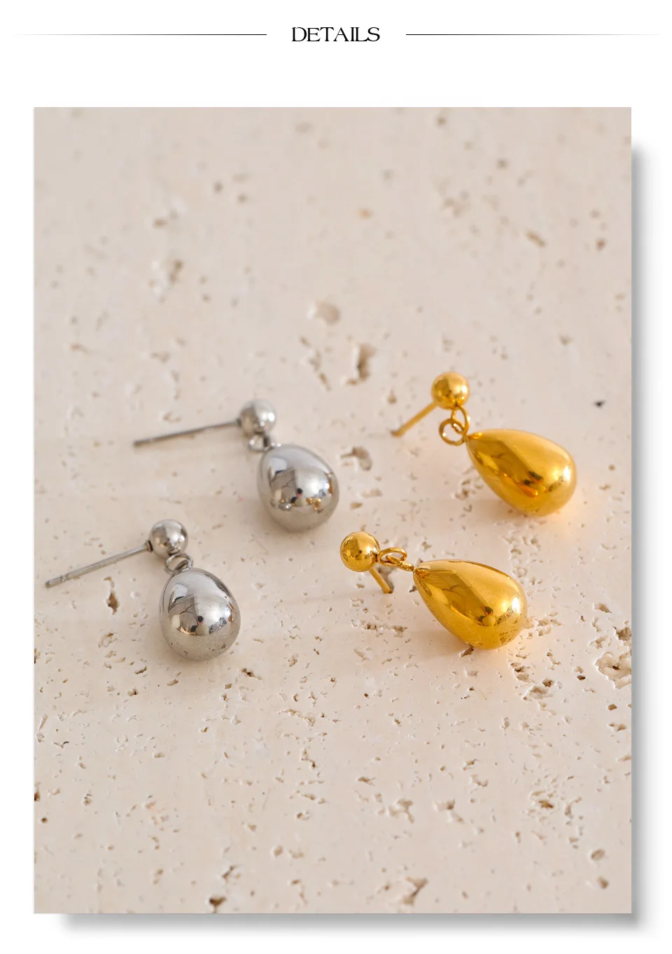 Finished with PVD real gold plating, they are waterproof, tarnish-resistant, and lightweight—perfect for all-day comfort and everyday wear. Their minimalist design makes them easy to style alone for a refined look or layered with other pieces for a more expressive statement.
