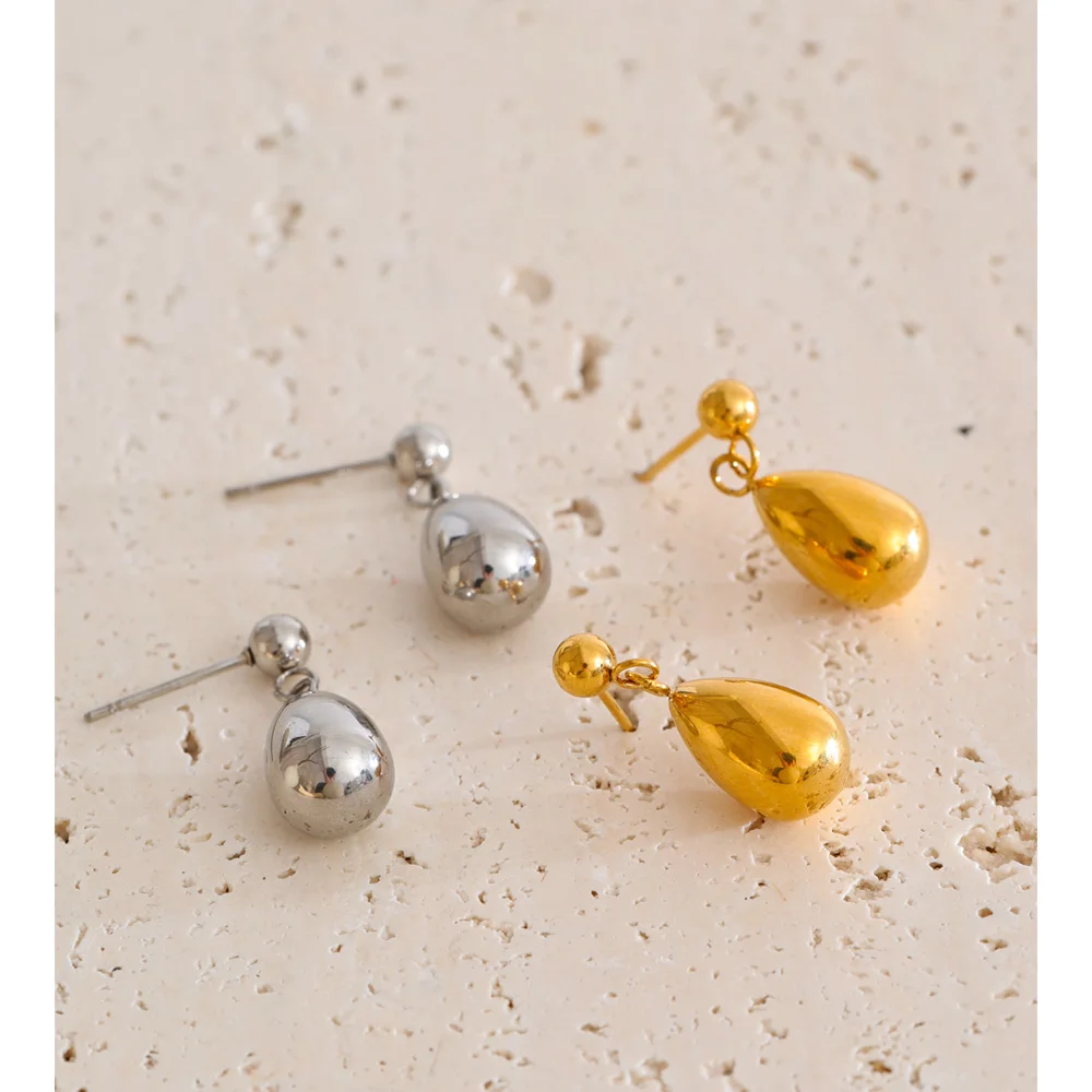 The Platinum Teardrop Whisper Earrings – Morning Dew embody modern femininity through clean lines and graceful form. Designed with a small water-drop shape, these stainless steel dangle earrings reflect light beautifully, creating a subtle shimmer with every movement.