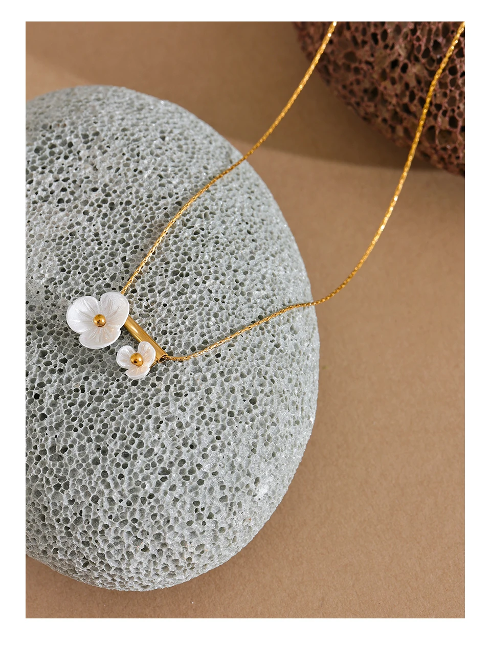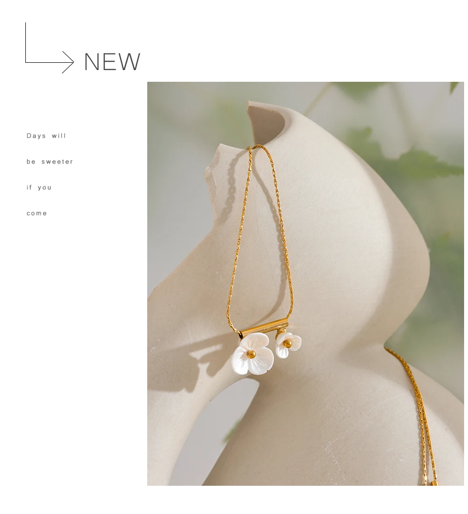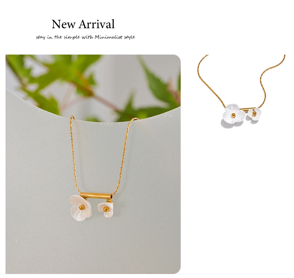 A sweet and romantic resin flower pendant necklace finished in 18K PVD gold tone. Lightweight and elegant, perfect for summer days and thoughtful gifting.