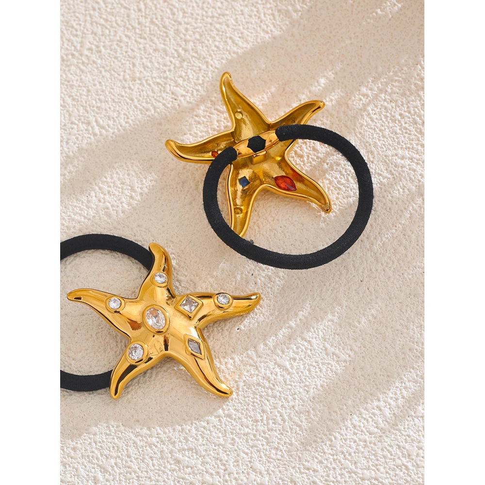 The Ocean Reef White Treasure Hairband – Coastal Spark brings the magic of the sea into a refined, jewelry-style accessory. Crafted from waterproof stainless steel with 18K PVD gold plating, it features delicate starfish motifs adorned with white cubic zirconia that capture light with every movement.