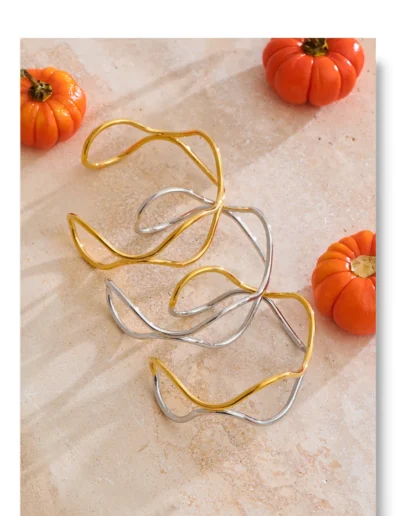 Minimal yet expressive, the layered waves create depth without weight. The open silhouette wraps the wrist with gentle structure, balancing strength and femininity in a single continuous gesture.
