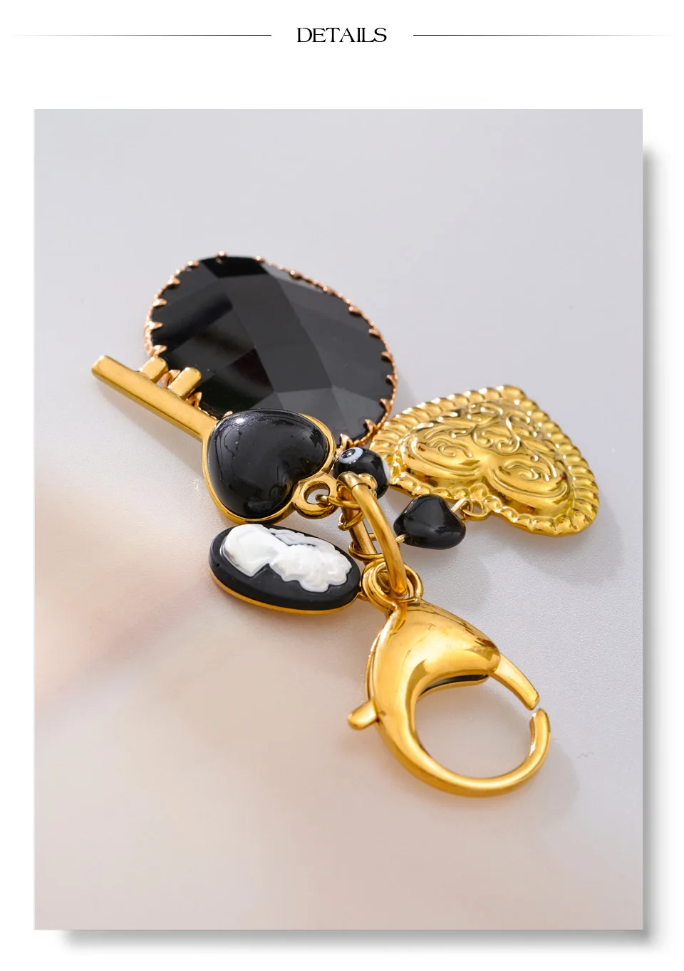 Crafted from durable stainless steel and finished with premium PVD real gold plating, this keychain offers lasting shine, resistance to tarnishing, and reliable everyday use. The secure lobster clasp allows for easy attachment to keys, bags, or accessories, while the lightweight resin material ensures comfortable carry. Free from high-concern chemicals, it combines fashion with peace of mind.