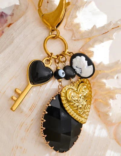 Perfect as a personal style accent or a thoughtful gift, this keychain transitions seamlessly from practical use to decorative charm. The Golden Noir Heart Keychain embodies modern accessory design—where playful symbolism meets polished urban aesthetics—for women with a confident, fashion-forward identity.