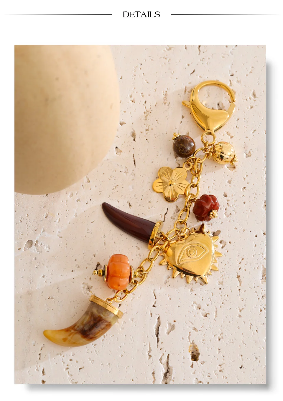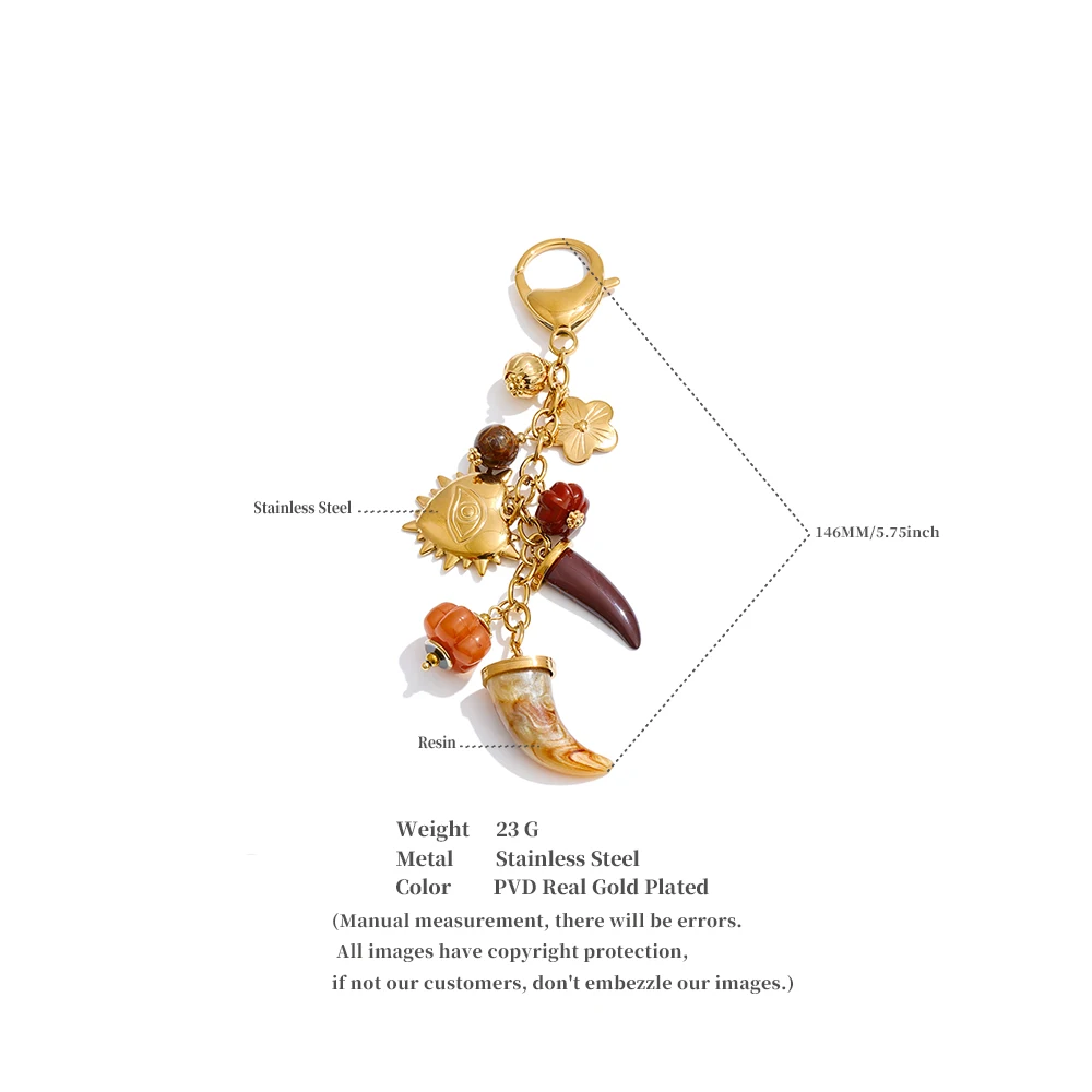 Crafted from durable stainless steel and finished with premium PVD real gold plating, this keychain offers long-lasting shine, resistance to tarnishing, and reliable everyday use. Lightweight resin charms ensure comfortable carry, while the secure lobster clasp allows easy attachment to keys, handbags, backpacks, or lanyards. Free from high-concern chemicals, it combines fashion with peace of mind.