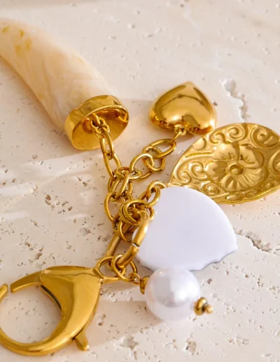 Crafted from durable stainless steel and finished with luxurious PVD real gold plating, this keychain offers lasting shine, resistance to tarnishing, and reliable daily use. The secure lobster clasp allows for easy attachment to keys, bags, or lanyards, while the lightweight resin elements ensure comfortable carry. Free from high-concern chemicals, it provides both style and peace of mind.
