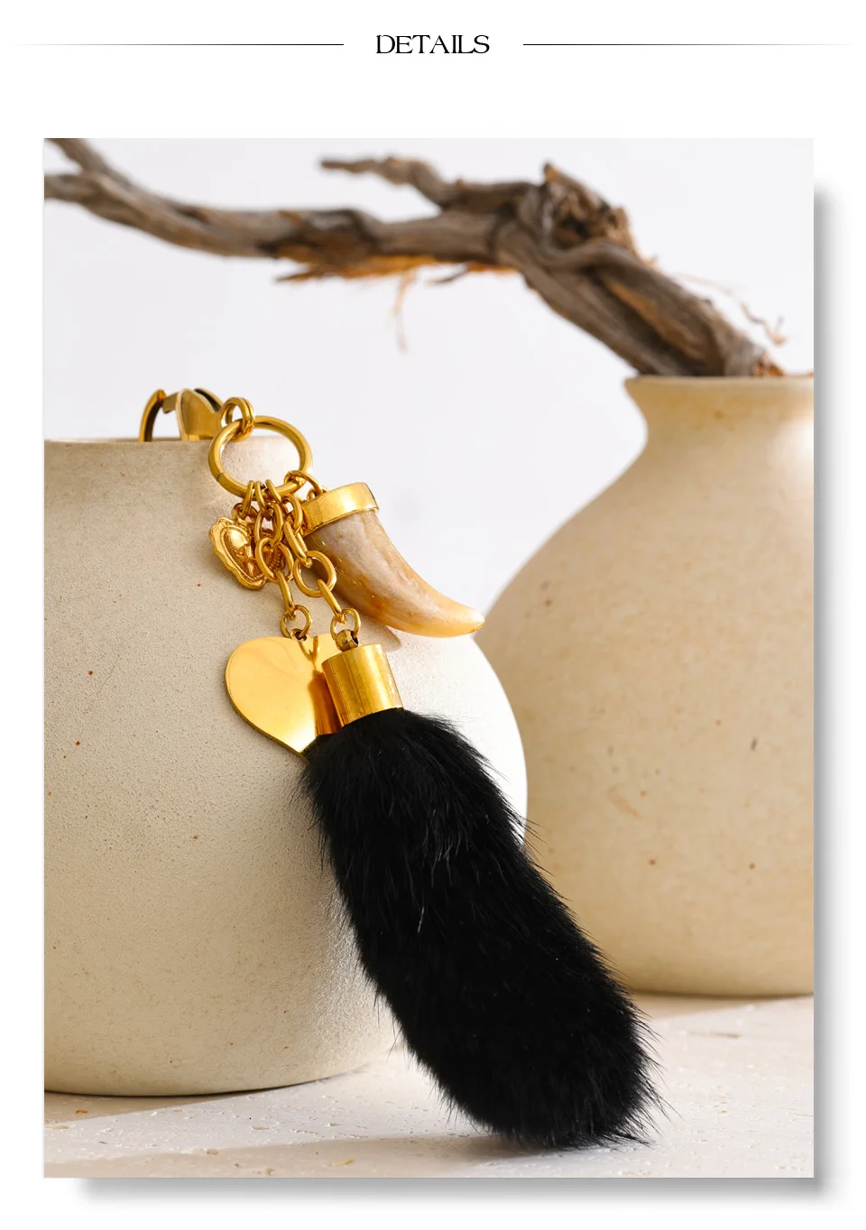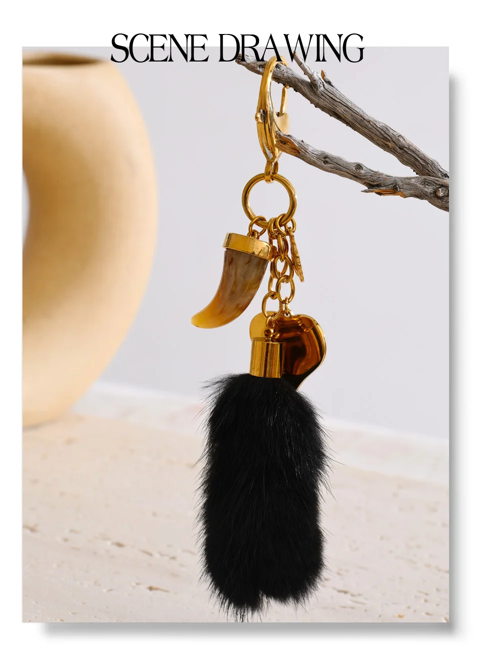 The Golden Heart in Midnight Keychain brings luxurious contrast and romantic flair to everyday accessories. Featuring a gold-tone heart pendant paired with a soft black fluffy detail, linked by durable stainless steel and finished with PVD real gold plating, this stylish keyring doubles as a chic bag or backpack accent—perfect for modern, trend-conscious women.