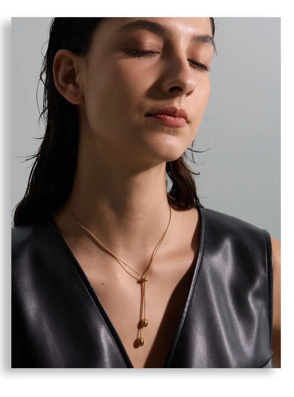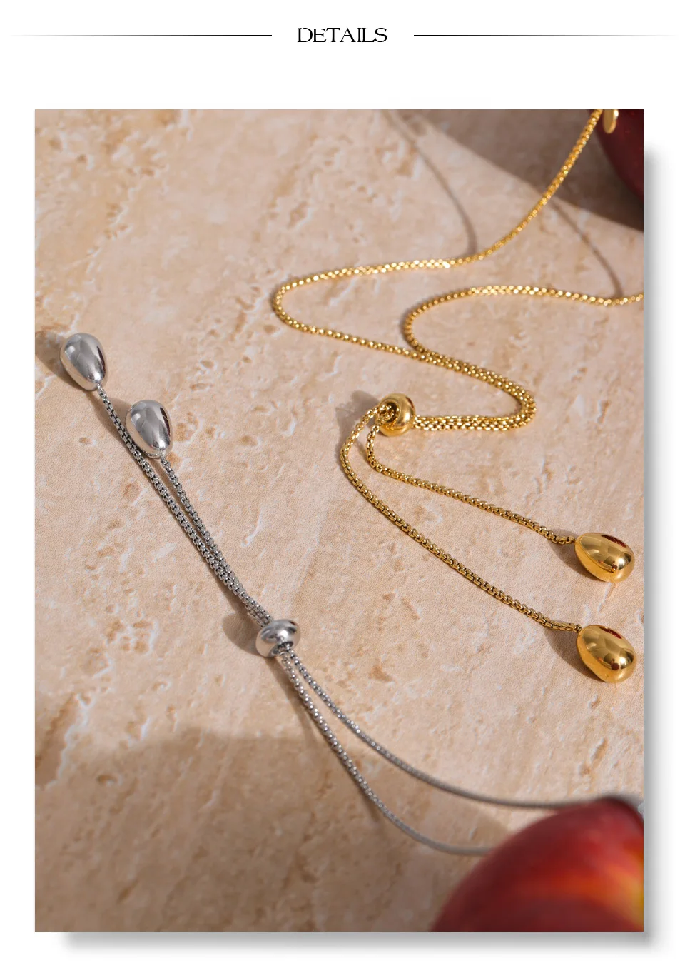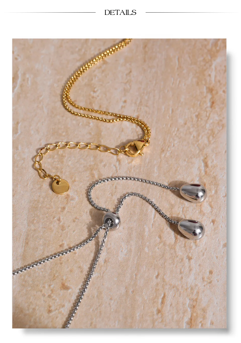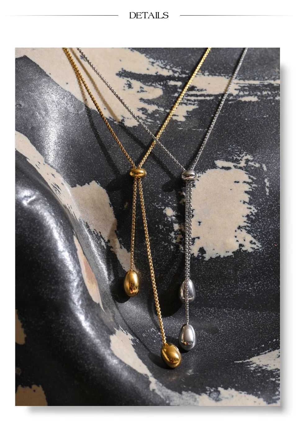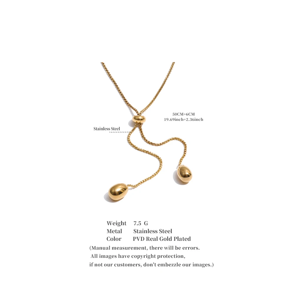 Crafted from high-quality stainless steel and finished with PVD platinum plating, this necklace is waterproof, durable, and resistant to everyday wear. The polished metal surface reflects light subtly, making it a versatile statement for both casual looks and elevated evening outfits.
