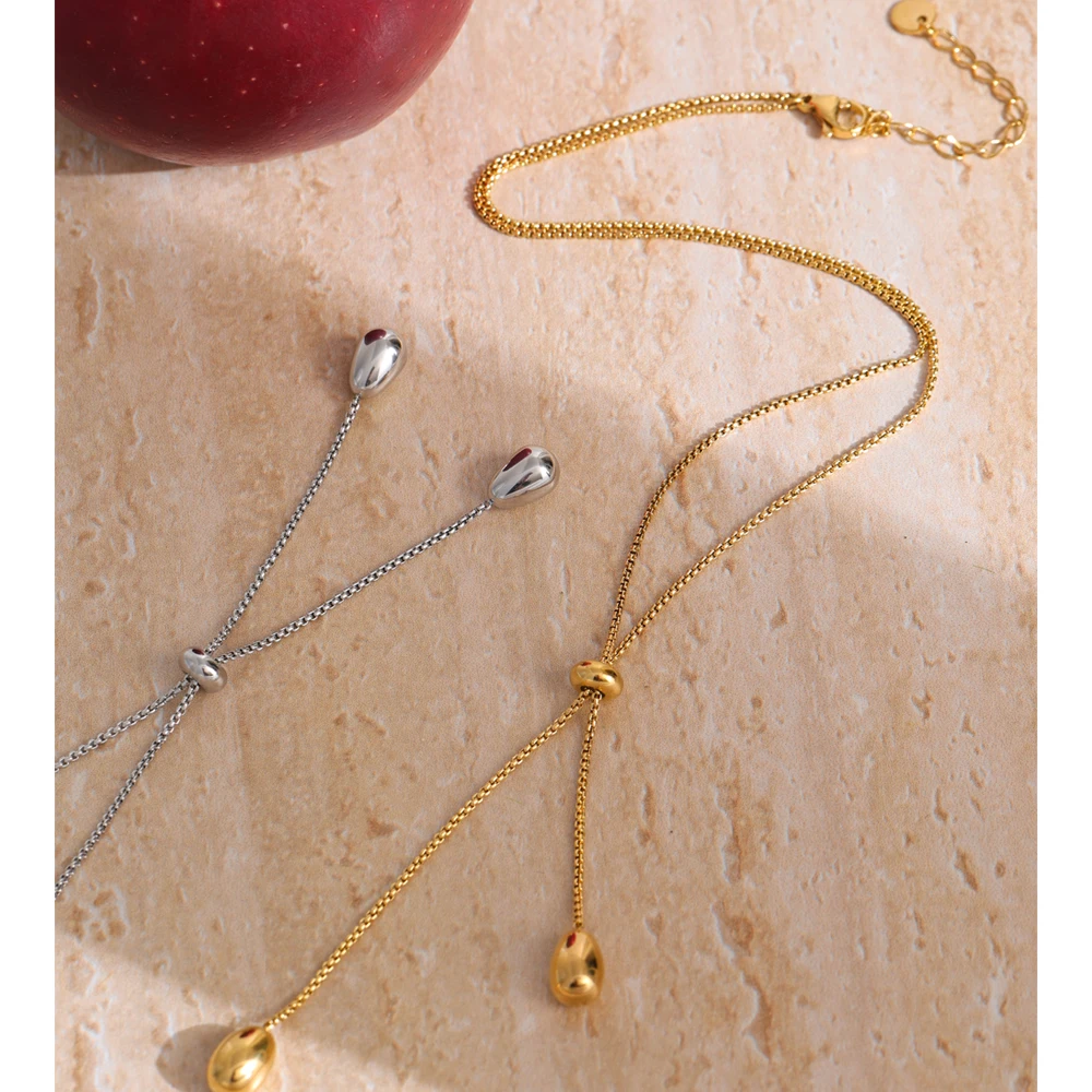 Striking in its simplicity, the Platinum Flow Drop Necklace – Subtle Allure embodies contemporary elegance with a refined Korean-inspired aesthetic. Its retractable chain design allows for adjustable length, creating a fluid drop silhouette that moves gracefully with every step.