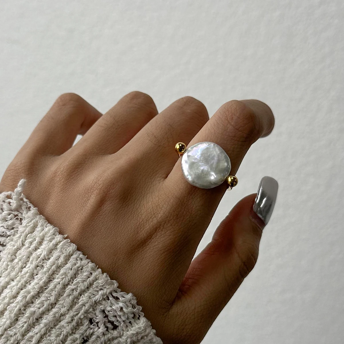The Pearl Affection Ring – Soft Devotion blends classic symbolism with contemporary design. Crafted from high-quality stainless steel and finished with durable 18K PVD gold plating, this ring features a bold yet graceful heart-inspired silhouette accented with smooth imitation pearls. The geometric structure adds a modern edge, while the warm golden tone brings timeless elegance.